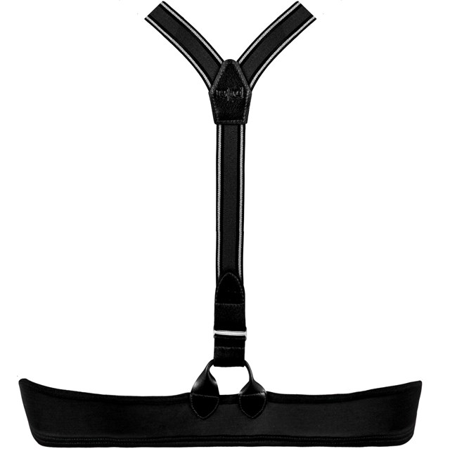 Djärva axelband som dekorerar ryggen med vacker korsning. Mönster av kritstreck och machoremmar som refererar till den första kvinnliga gangsterfilmen "Gloria". Vadderingen ger dina bröst extra stöd.